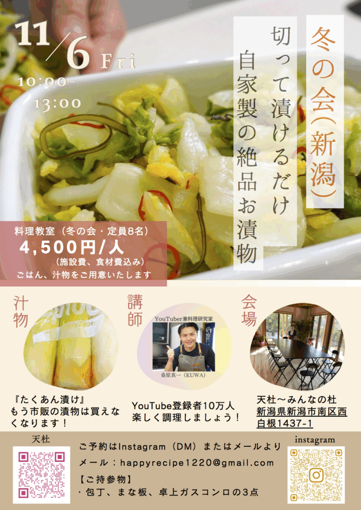食・楽2026年1月27日◆切ってつけるだけ~料理教室(冬)◆11/6㊎
